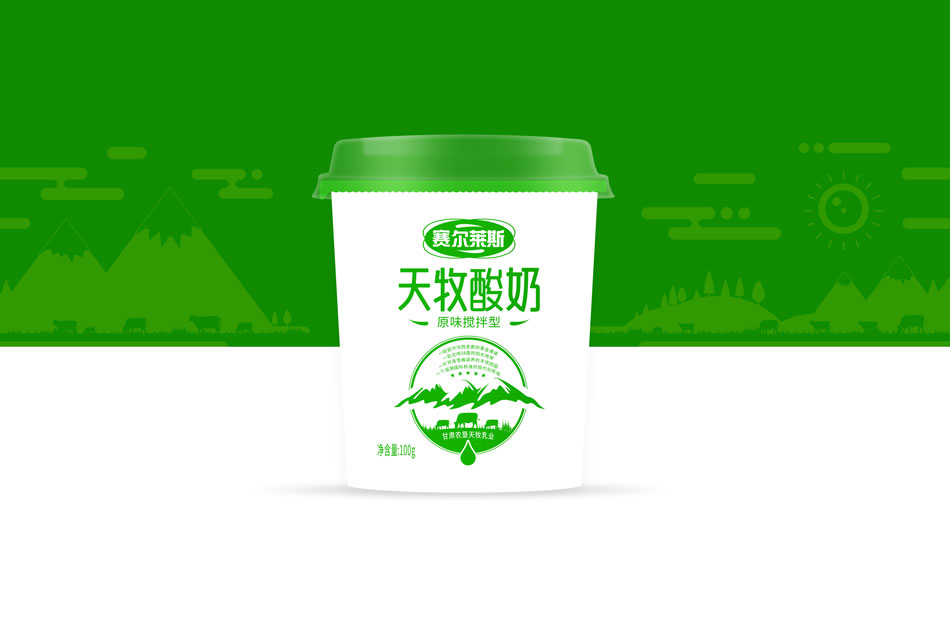 客戶名稱 : 甘肅農墾集團公司 / 服務內容 : 天牧乳業-賽爾萊斯天牧酸奶原味攪拌型包裝設計 / 創作日期 : 2018