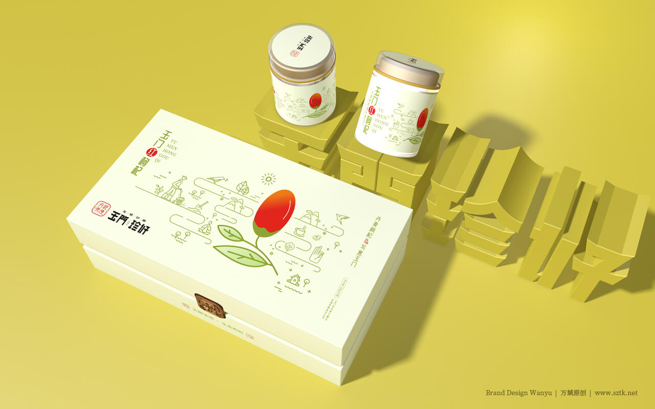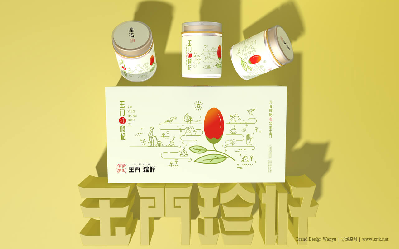 “玉門珍好”是玉門市傾力打造的農(nóng)產(chǎn)品區(qū)域公共品牌。2018年深圳萬域品牌包裝與“玉門珍好”達成合作,對當?shù)厥a(chǎn)的黑枸杞,紅枸杞等等農(nóng)產(chǎn)品進行品牌包裝策劃設計。