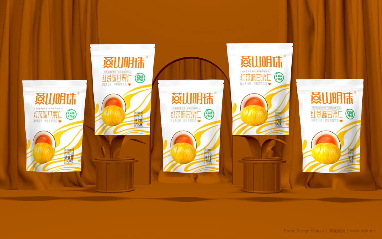 品牌大戰略目標一:尋找“中國板栗哪個產區最好?”;于是,經萬域創作團隊走訪查閱調研,最終萬域團隊精煉出“世界板栗看中國, 中國板栗看燕山”的傳播語,注意:傳播語不是無中生有,而應順其根源文化;策略其一:任何一種好原料,都有最佳產區。如枸杞=寧夏;香蕉=海南;葡萄=新疆等等,而板栗呢?據調查,眾多普通人民無法想到對應的產區這是一個天大的機會!占領則銷量不可想象。策略其二:同時,我們發現“燕山明珠”品牌剛好具備“好產區好品牌”的基因!“燕山”為好產區,“明珠”為好質量?!把嗌矫髦椤本褪呛卯a區中的“權威好品牌”!在品牌推廣后,追隨品牌或消費者會眾口相傳,這句朗朗上口的傳播語“世界板栗看中國, 中國板栗看燕山”將給燕山地區板栗產品帶來巨大的機會!同樣會給“燕山明珠”品牌帶來深遠且持續的利好!最終目標:板栗品類“燕山明珠”品牌成為首選!